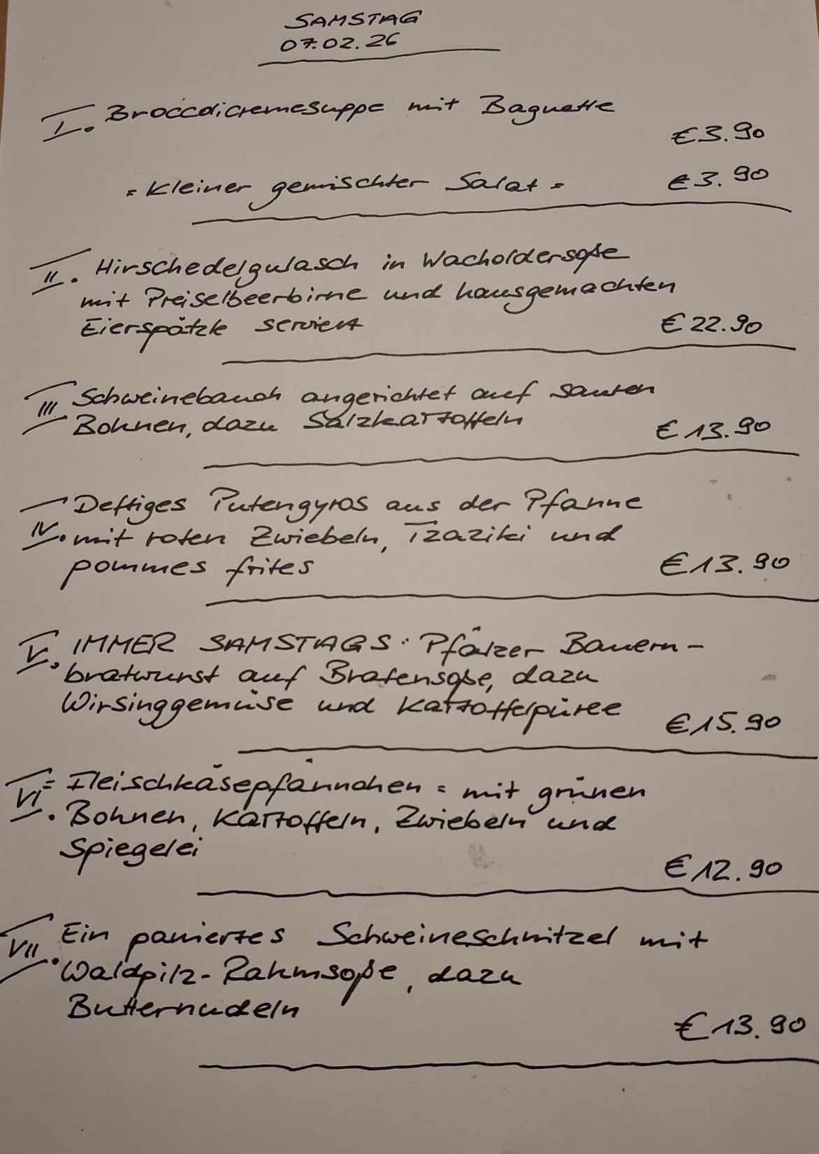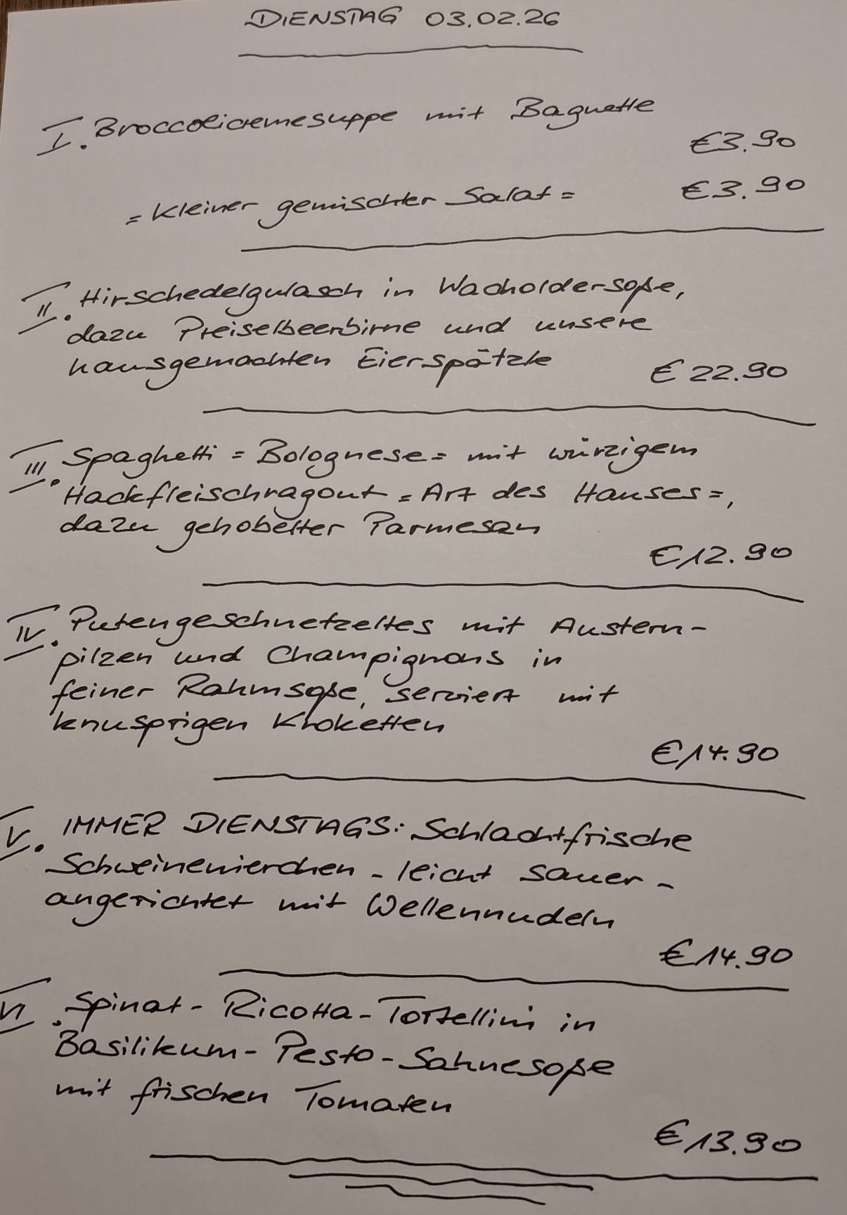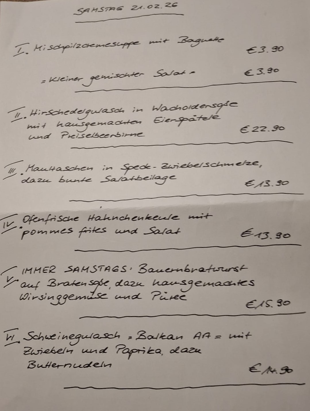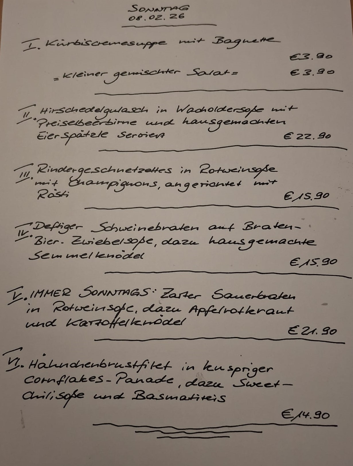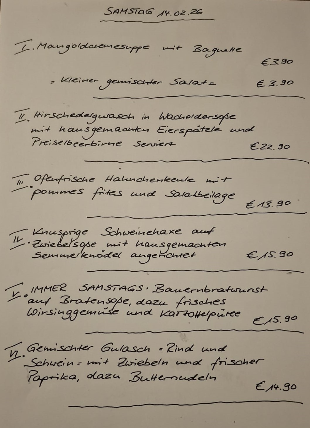 Immer wechselnde Gerichte passend zur Saison. Traditionelle deutsche Küche vom feinsten. Wir freuen uns auf Sie!