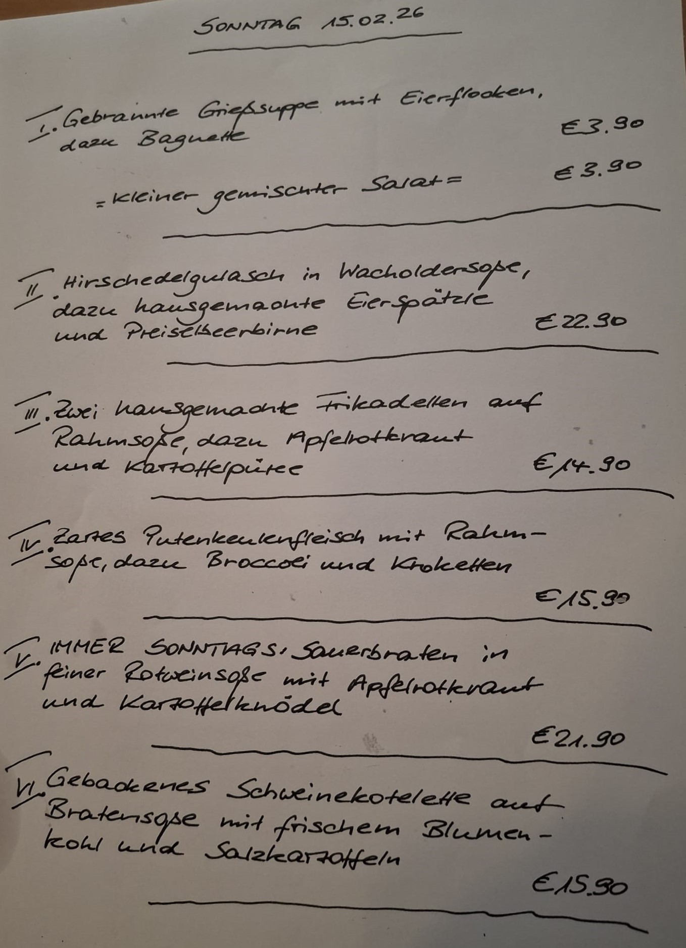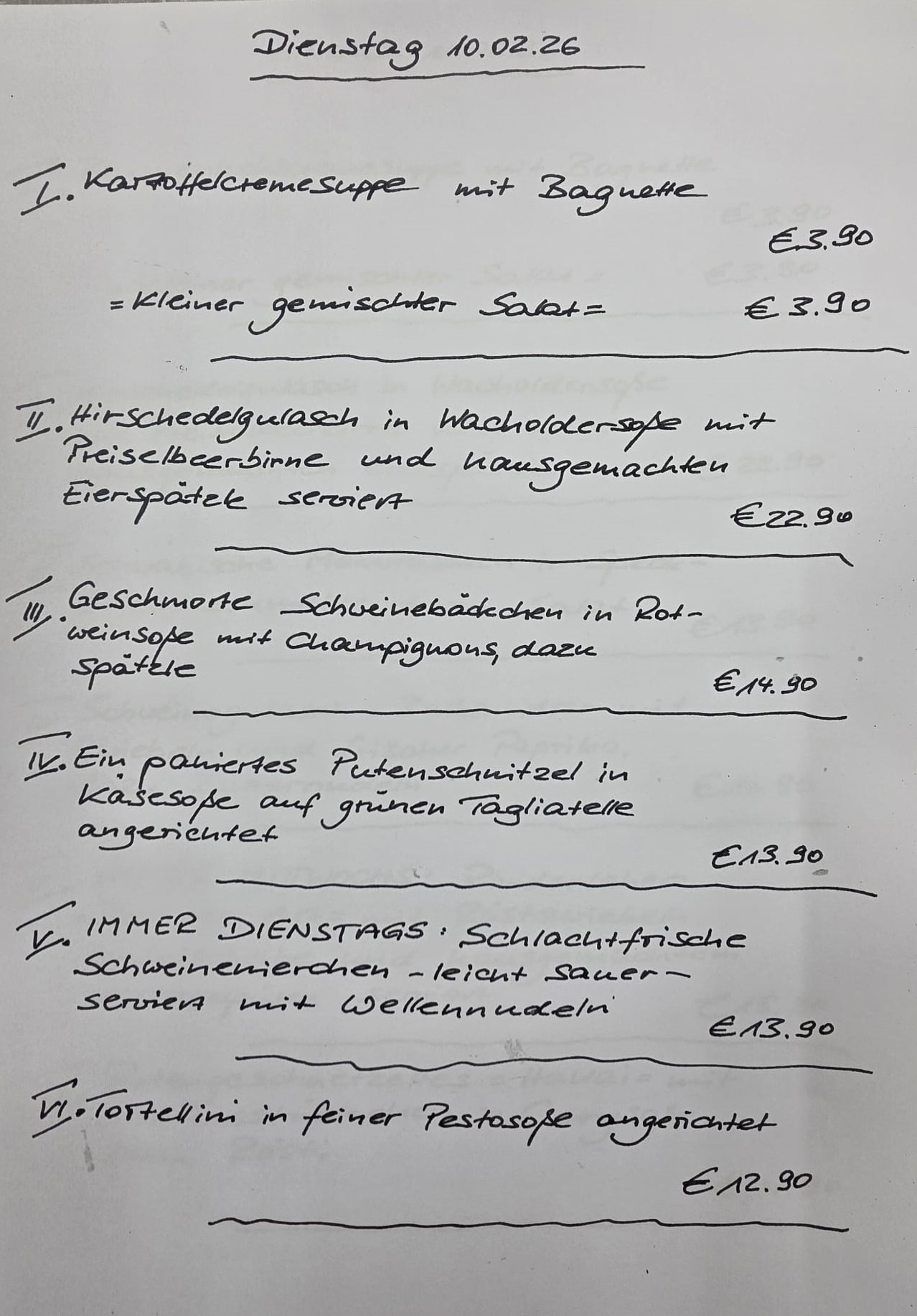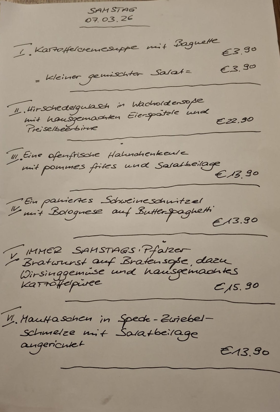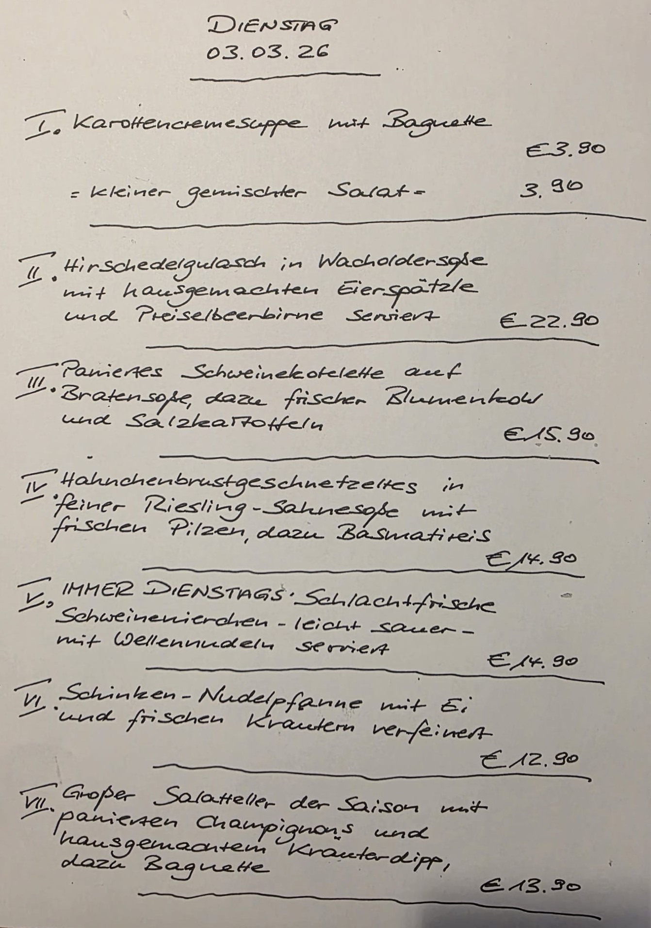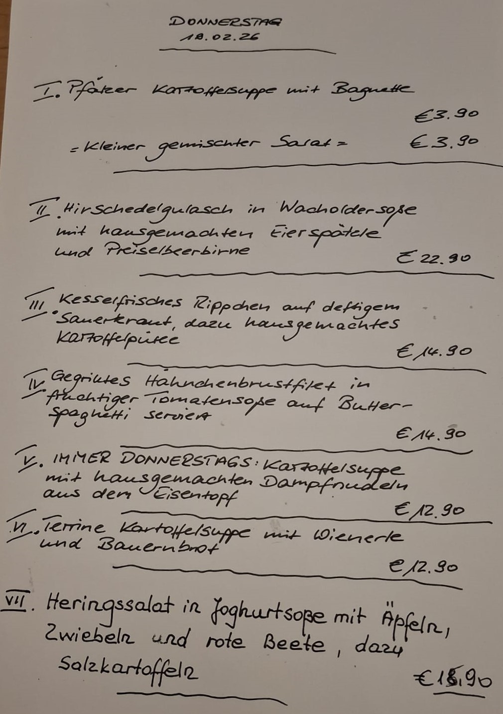 Immer wechselnde Gerichte passend zur Saison. Traditionelle deutsche Küche vom feinsten. Wir freuen uns auf Sie!
