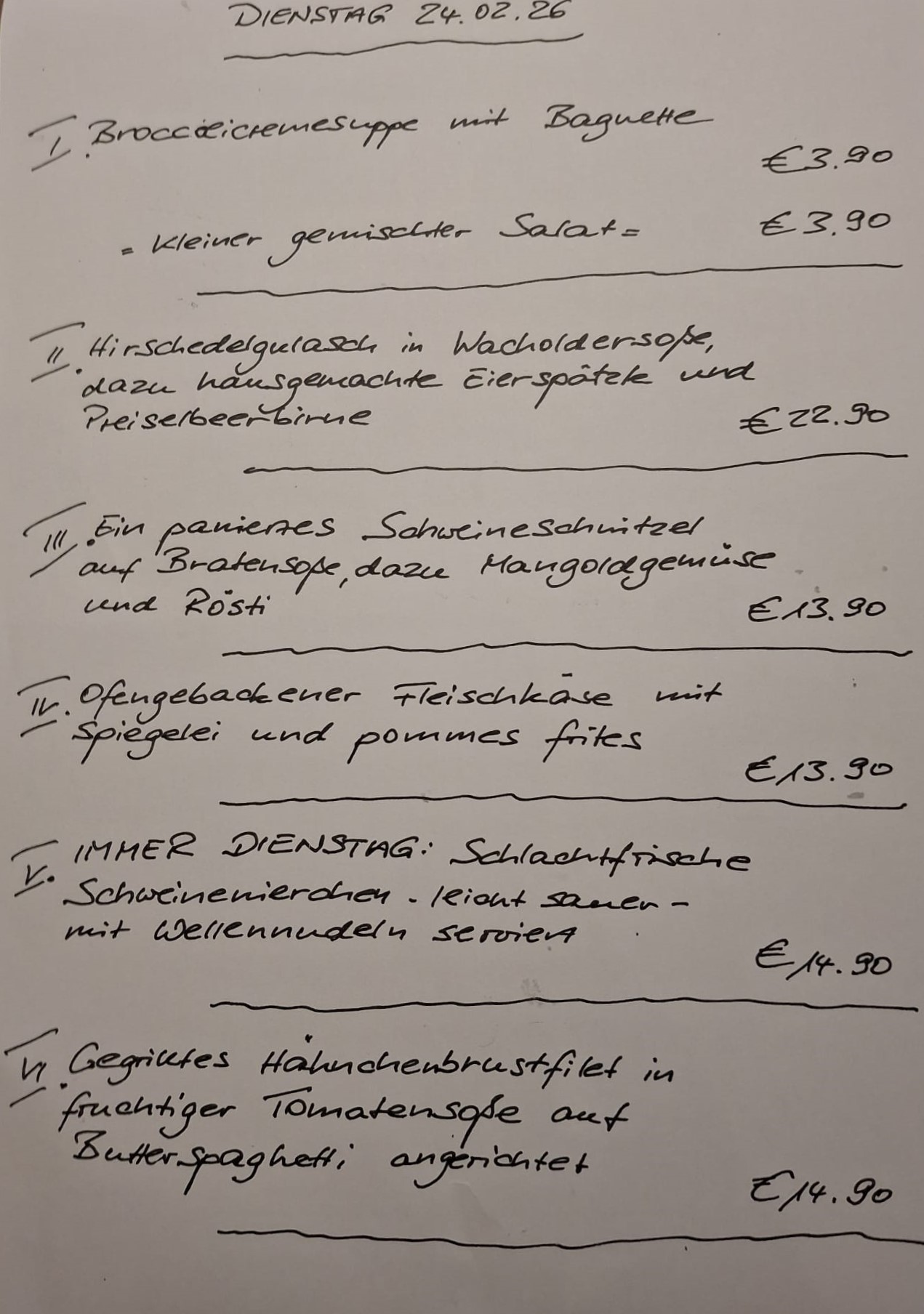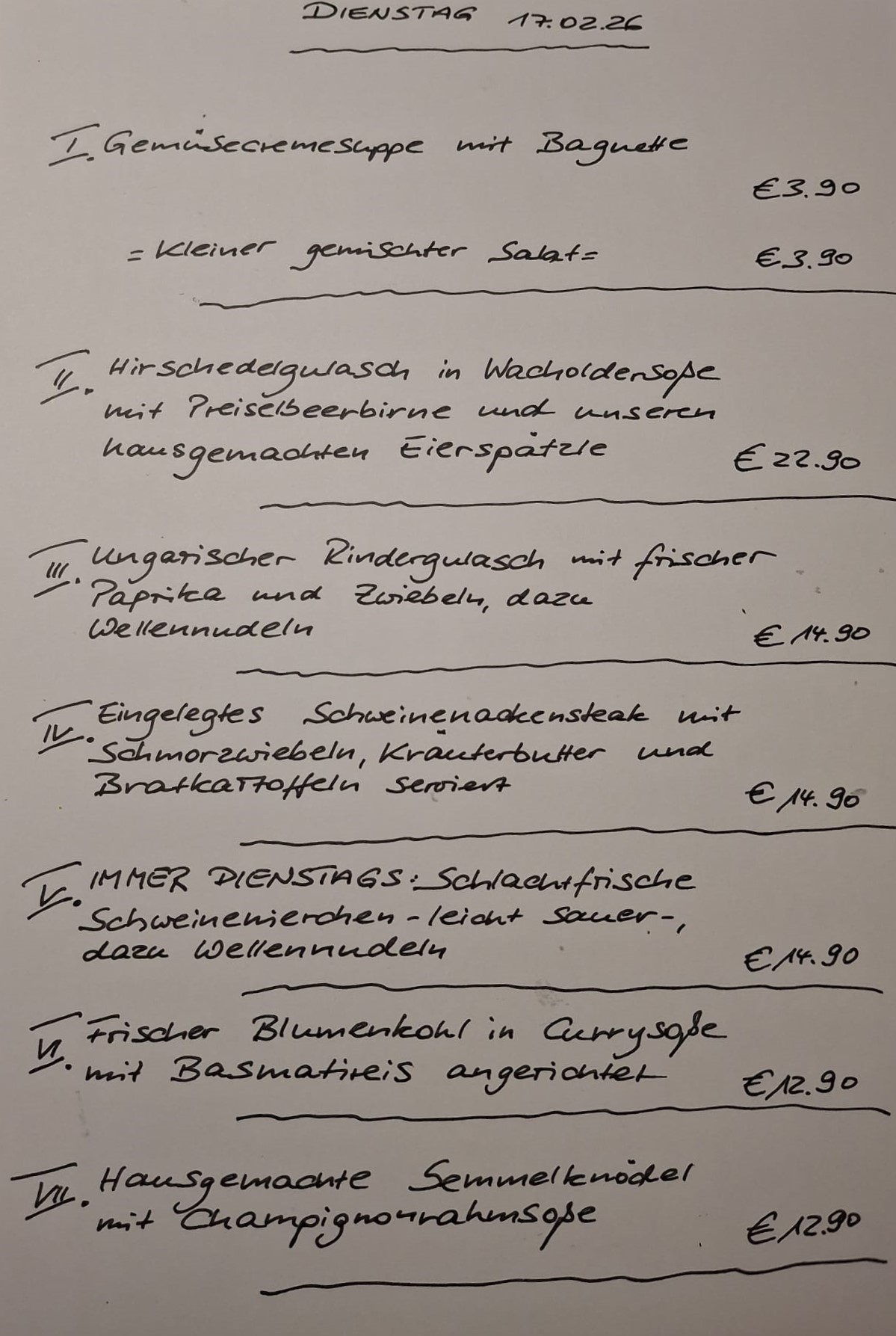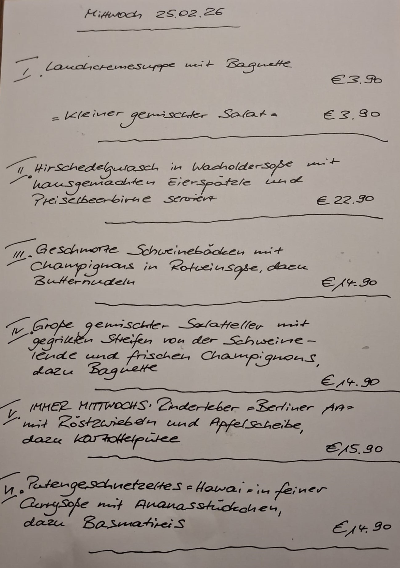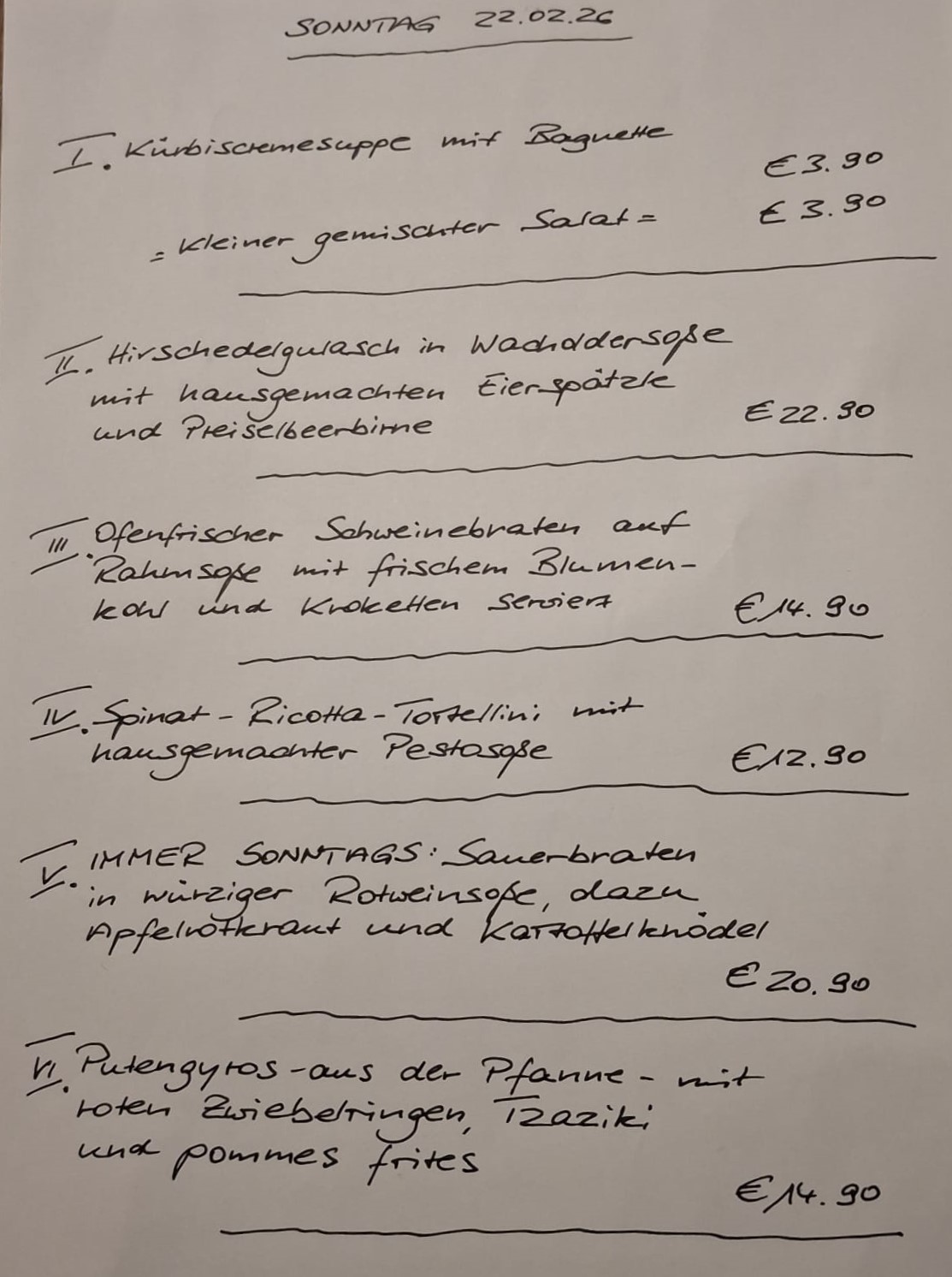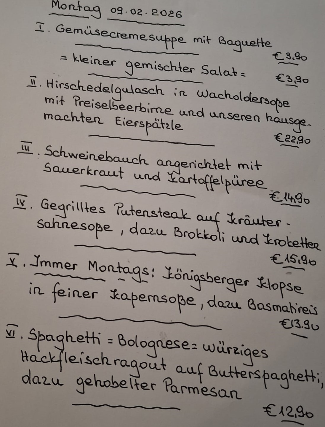 Immer wechselnde Gerichte passend zur Saison. Traditionelle deutsche Küche vom feinsten. Wir freuen uns auf Sie!