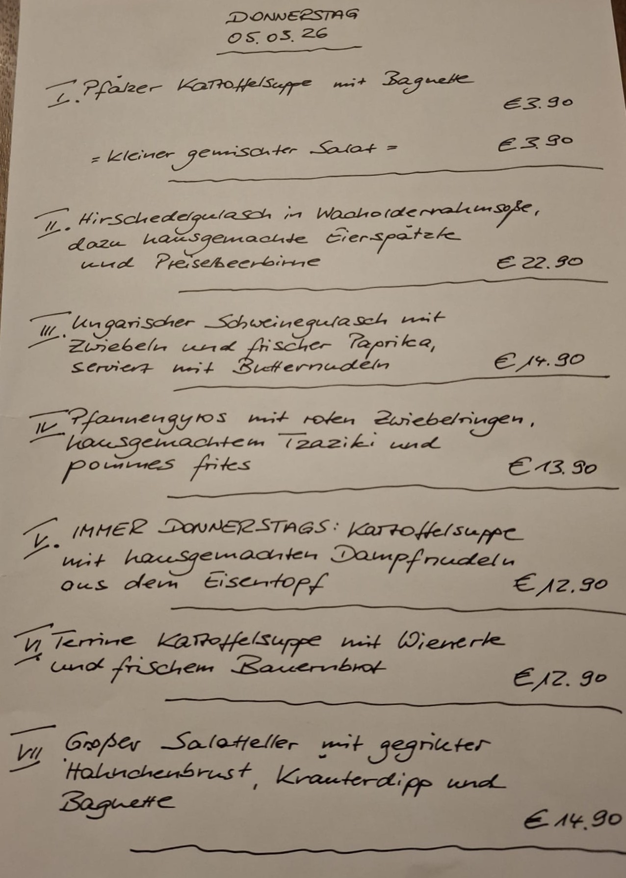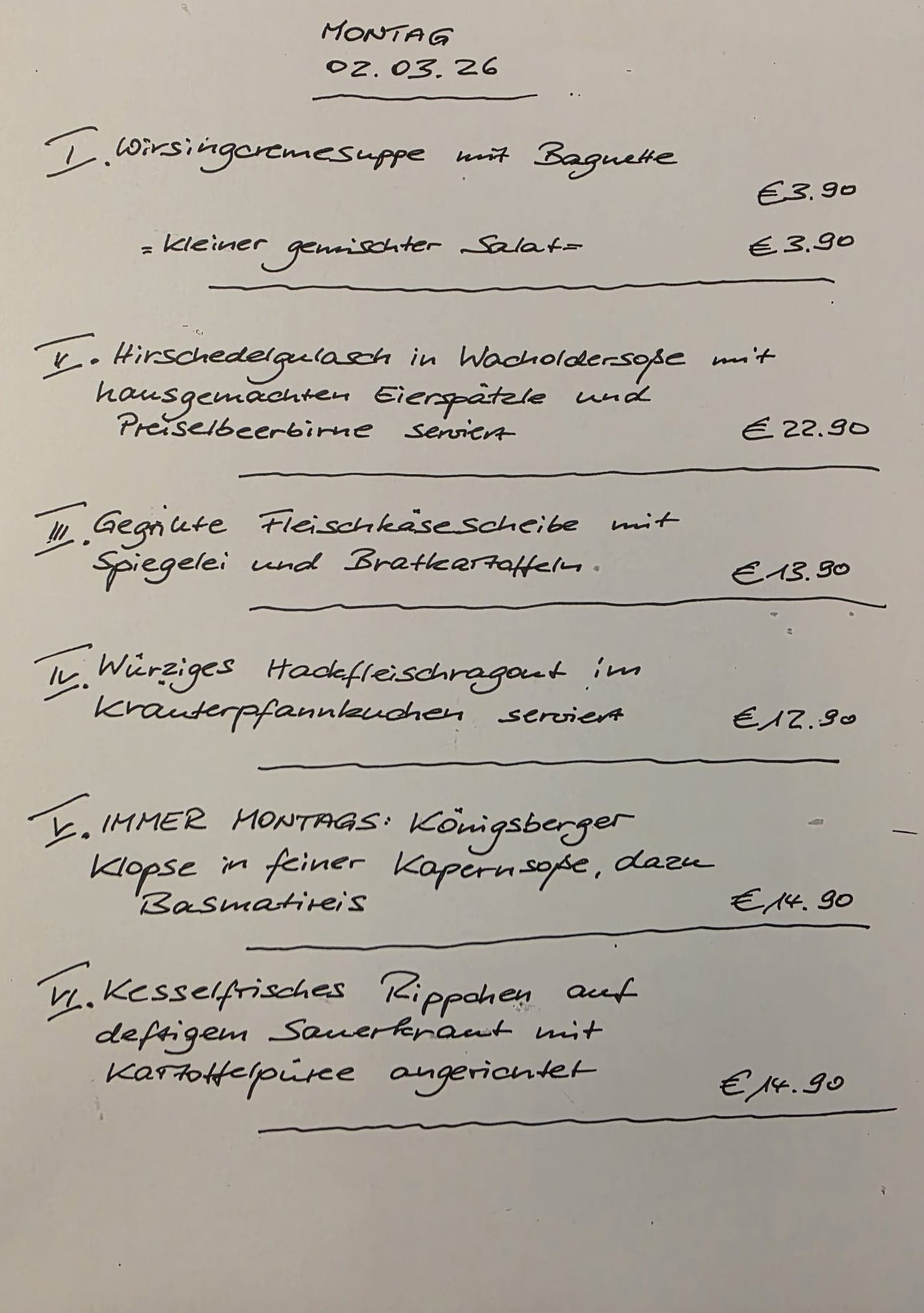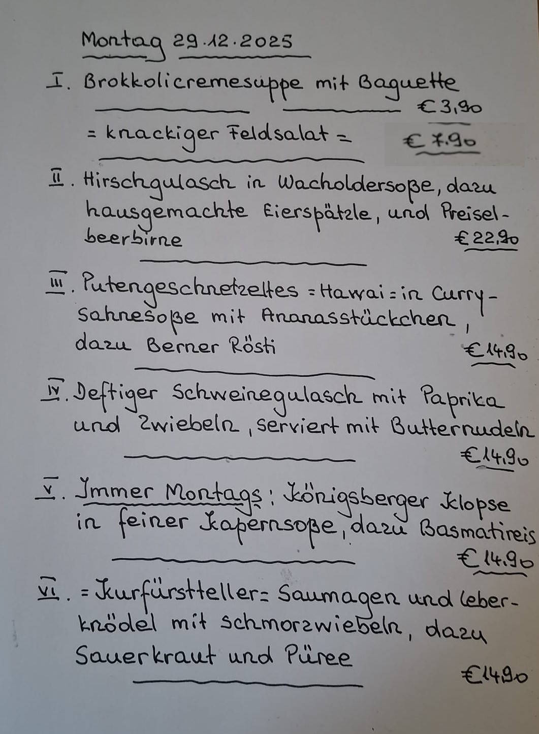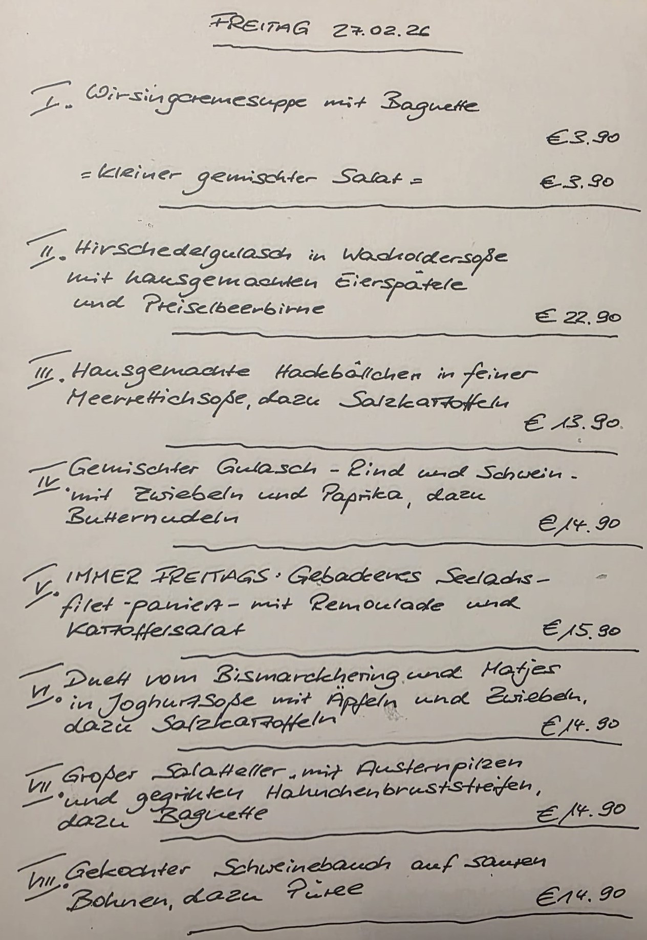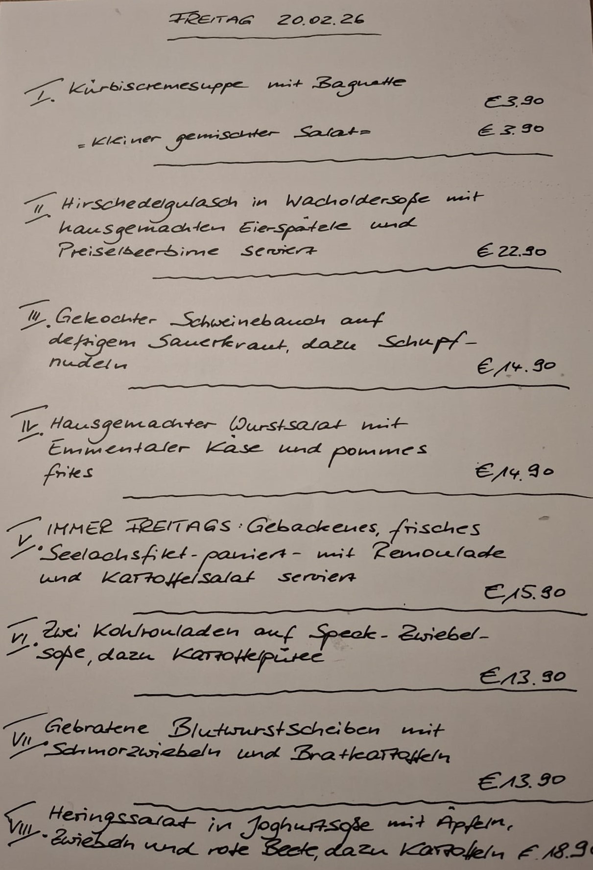 Immer wechselnde Gerichte passend zur Saison. Traditionelle deutsche Küche vom feinsten. Wir freuen uns auf Sie!